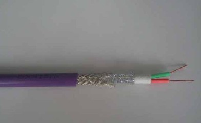鋁箔、裸金屬絲編織雙層屏蔽,PVC外護套,外觀紫色。