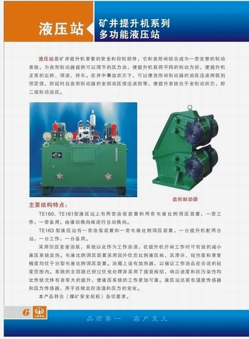 是高性能新型提升機制動控制液壓系統,它是為大型提升機制動控制設計和制造的,其能力覆蓋范圍廣,可替代國內外提升機主機所配套的所有高、中壓液壓站。能實現二級制動和恒減速控制。可配套皮帶輸送機、鉆機、纜車制動控制和其它液壓控制。