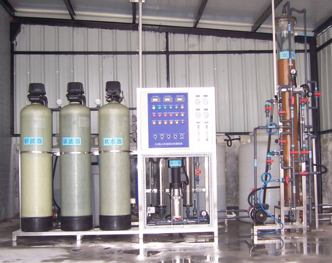 離子交換混床為深度脫鹽設備,用于制造高純水,產水電阻率最高為10-18MΩ.CM(25℃),二氧化硅含量(SIO2)≤0.02mg/L,混床分為單、雙床、拋光床、雙床可一用一備,(不影響生產用水的連續性);可串聯使用,以提高產水水質,有效利用樹脂的交換容量;當生產用水量大時,可并聯使用,運行相當靈活、方便。出水電導率由高精度電阻率儀監控。環保型再生系統,高濃度酸堿通過射流器與進水按一定的比例配制成再生溶液進行再生,不需要酸堿泵及酸堿配制儲罐,防止酸霧對環境的污染。